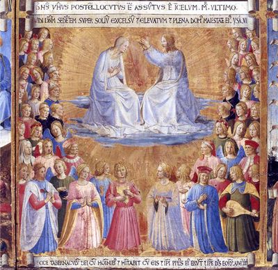 El gran destino que el ángel le descubrió a María, en la Anunciación, como una corriente de fuego y de luz, ha pasado uno a uno a través de todos los misterios. El pensamiento de Dios sobre nuestra salvación, que se ha hecho patente en tantos cuadros, nos ha acompañado hasta aquí y nos lleva ahora a Dios en el esplendor del cielo.
