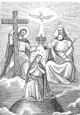 La gloria de María, Madre de Jesús y Madre nuestra, toma su fulgor de la luz inaccesible de la Trinidad augusta. Vivos reflejos de ella caen sobre la Iglesia, que triunfa en los cielos, que padece en la confiada espera del purgatorio, que lucha en la tierra.
