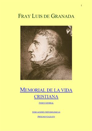 Memorial de la Vida Cristiana , de Fr. Luis de Granada O.P. tomando como texto base la Obra Doctrina cristiana, editada en Madrid en 1657 en la Imprenta de Melchor Sánchez. El original tiene 872 páginas in folio.