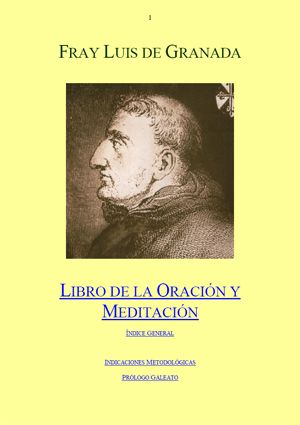 Libro de la oración y la meditación, de Fr. Luis de Granada O.P. tomando como texto base la Obra Doctrina cristiana,editada en Madrid en 1657 en la Imprenta de Melchor Sánchez. El original tiene 872 páginas in folio.