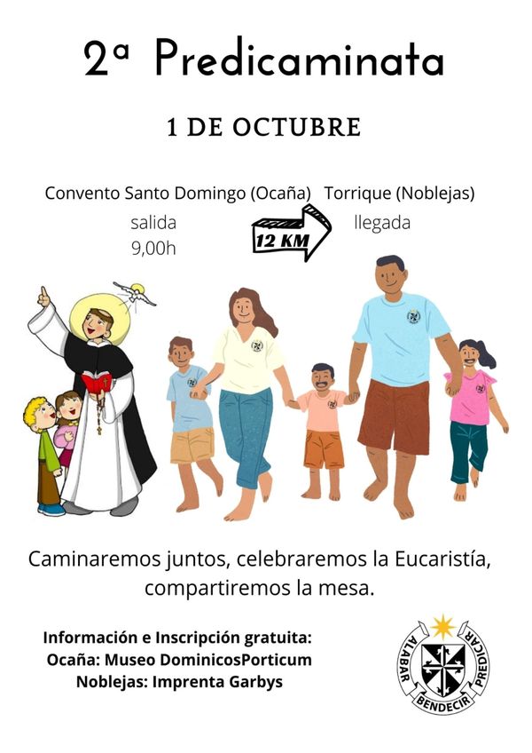 La Comunidad de frailes de Ocaña del Vicariato del Rosario, invitan a la 2ª PREDICAMINATA, saliendo del Convento Santo Domingo (Ocaña), siguiendo la ribera del río Tajo en el Municipio de Noblejas, el día 1º de octubre de 2022. Hora de salida 9,00h.