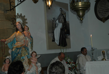 Antes del inicio de la Misa solemne el P. Pedro Juan descubrió el cuadro del Beato Buenaventura en medio de una cerrada ovación. Después, procedió a hacer una interesante y sucinta semblanza de los dos Beatos, que fue seguida con el máximo interés de todos los asistentes. La vida, la trayectoria, el ejemplo y el martirio de los Beatos son y serán una referencia de fe y de vida para todos nosotros. Las impresiones de la gente que tuvieron la suerte de estar allí rezumaban gratitud y alegría. La presencia de los Padres Dominicos, los cánticos que ambientaron antes de la Misa y durante la misma y especialmente la semblanza de los mártires, vigorosamente proclamada por el P. Pedro Juan, la objetividad, el equilibrio, la exposición justa y reconciliadora sobre sus vidas con el momento histórico pasado y presente, la homilía que enlazaba sus semblanzas con el relato de Abrahán… todo fue una experiencia de la que damos gracias al Señor, a los Beatos Buenaventura y Maximino y a la Orden