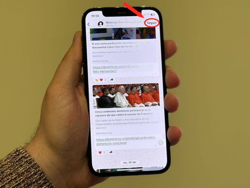 Para estar al día de todo lo que ocurre en la Familia Dominicana, puedes seguir el canal de noticias de Dominicos España en WhatsApp. Solo tienes que hacer clic en este enlace o en el botón inferior desde tu móvil y pulsar “Seguir”: