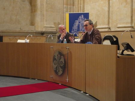 El escritor comenzó su intervención con estas palabras: “Vengo a compartir con todos vosotros una pasión, la pasión contemplativa. Creo en el poder del silencio y de la contemplación. La contemplación no sólo es el momento de ‘cargar las pilas para la acción’. La contemplación transforma la realidad mucho más que una acción, la cual puede ser sólo frenesí. Voy a hablar del arte de la meditación, convencido de que no hay una aventura como la entrada en uno mismo, ni hay paisaje exterior que pueda compararse con el propio interior. No entiendo la meditación como reflexión, sino como silencio. Estamos bombardeados continuamente por palabras. Si no creamos silencio esas palabras no nos van a alimentar sino que nos van a aturdir”.