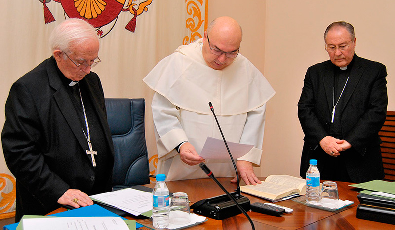 Ante el cardenal Cañizares, en la reunión del Consejo Episcopal