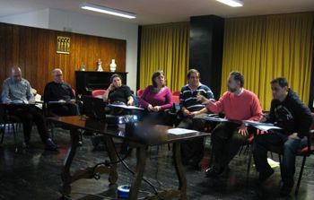 La primera parte de la mañana se dedicó íntegramente al diseño de la campaña. Abrieron la reunión los responsables del Área de Pastoral de la Fundación Educativa S. Domingo, Ángel M. y Luis del B., quienes nos presentaron el proyecto pedagógico de la campaña. El trabajo es magnífico, y sólo mereció nuestros elogios. La campaña se dividirá por bloques temáticos, enlazados y articulados de manera progresiva. El Equipo PJV elaborará a partir de este "itinerario" fichas para trabajar durante, prácticamente, dos cursos. Cerró la mañana Ricardo R. de las Comunidades Juana de Aza que ahora se incorporan al Equipo, explicándonos cómo funcionan actualmente y cuál es su vinculación con Familia Dominicana. Bienvenidos al trabajo con jóvenes.