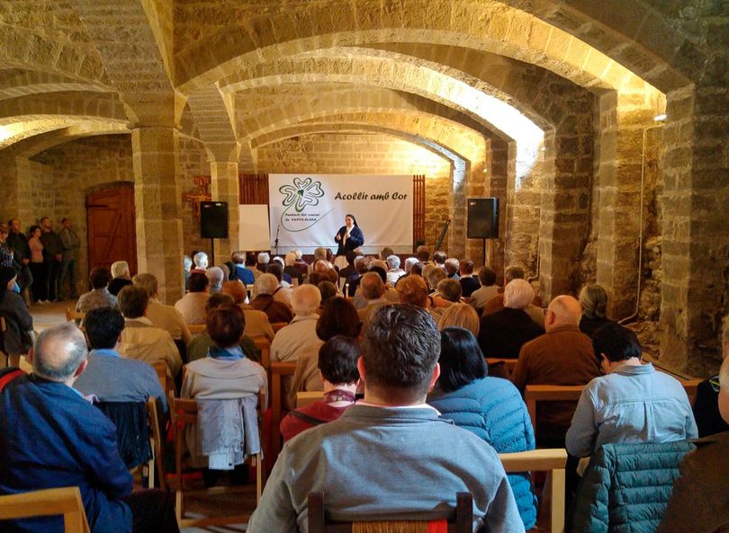 La llegada estaba prevista entre 10:30h. y las 11h. Un grupo de voluntarios junto con las hermanas acogieron los diferentes grupos ofreciéndoles unas pastas, bebidas o café. A continuación, en la sala gótica comenzaron los actos previstos. La presidenta de la Familia Dominicana en Cataluña, la hermana Carmen Sendino, dominica de la Enseñanza, dio la bienvenida a todos los presentes. Su mensaje fue el de hacer crecer la cultura de la misericordia y de la hospitalidad, construir y ser puentes en nuestra vida y misión de cada día.
