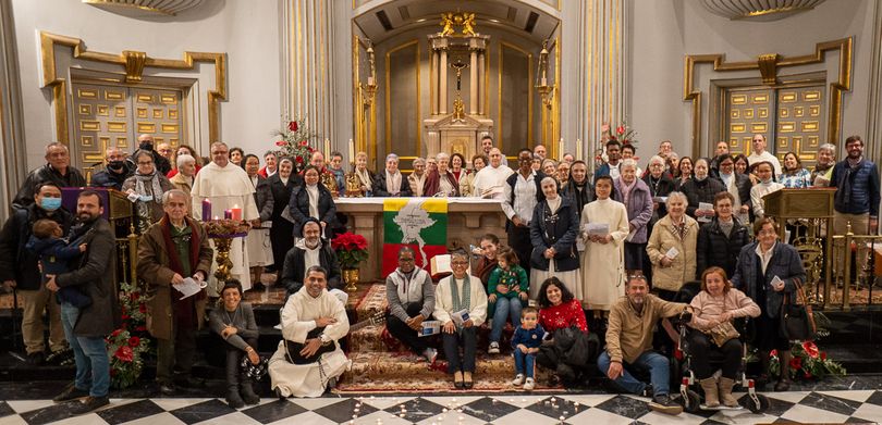 D. Ignacio Peiro OP, presidente de la fraternidad laical de Atocha, hizo la introducción, preguntando a la Familia Dominicana presente si les había tocado la lotería: “y quizás la respuesta es que sí: nos ha tocado la lotería de pertenecer a una Orden, a una familia, que en el transcurso de los años se mantiene fiel a su carisma fundacional, tal y como nos demuestran el testimonio de nuestras hermanas y hermanos en Myanmar. Que pese al horror y al sufrimiento que le provocan situaciones como las que vive el pueblo de Myanmar, se aferra y se fortalece en la esperanza y alegría por el Dios que nos nace”.