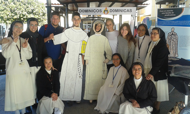 Nuestro stand estuvo organizado por las Misioneras de Santo Domingo, pues, atendiendo la petición de Sor Teresa, se desplazaron hasta Murcia para este servicio la Coordinadora de Pastoral, Julia Guzmán, y el grupo de junioras que había participado con ella en la Feria Vocacional del Encuentro Europeo de Jóvenes del verano, esta vez junto a otra Hermana joven, Marta García. Sirviéndose de material con que contamos en PJV FD y de distintos recursos que ellas habían puesto en práctica en nuestro anterior Stand, se entró en contacto con aquellos universitarios en clave dominicana, se les dio a conocer nuestro Carisma y se les habló del Jubileo 800 años OP.