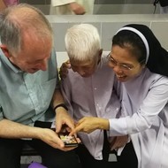 Probablemente, el evento más importante de la mañana del miércoles, al menos para los voluntarios del centro La Blanca Paloma de La Zubia, fue la misa con los usuarios del centro. Aquella mañana, el Equipo de Organización dejó por un rato los fogones de la Casa de Siena para unirse a esta celebración. Las palabras de Fr. Félix, que ofició la ceremonia, y la voz y la guitarra de Ana Ortiz, se unieron a la alegría que siempre desprende el personal de La Blanca Paloma, dando lugar a una misa tan peculiar como entrañable.