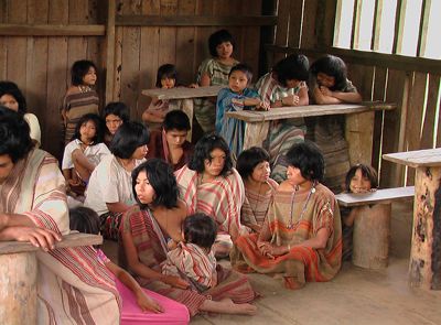 Seguimos carretera, hoy asfaltada, hacia KORIBENI, siguiendo la caprichosa curvatura del río Urubamba. Son dos horas y media de camino hasta la misión. Atendemos en ella veinte comunidades de colonización quechua, asentadas mayoritariamente a lo largo de la carretera y otras veinte de etnia indígena matsigenka dispersas por lo más remoto de los ríos que afluyen al Urubamba. Hoy las carreteras facilitan el acceso a las mismas, pero todavía hay que caminar de dos horas a dos días para llegar a ellas. En la misma misión atendemos un internado con cuarenta muchachas y muchachos, quechuas y matsigenkas, de las comunidades más alejadas y menores recursos. El colegio con 450 alumnos y nueve de las escuelas de las comunidades matsigenkas, pertenecen a nuestra Red de Escuelas del Sur Oriente Peruano: RESSOP.