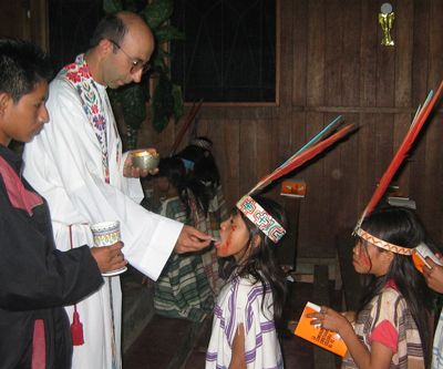 En otras tres horas de lancha estamos en la misión de KIRIGUETI de la que salió nombrado Obispo Monseñor David. Son muchas y muy distantes las comunidades matsigenkas, yines y ashaninkas que pertenecen a esta misión, algunas de reciente contacto que han suscitado la atención nacional e internacional debido a la explotación de gas y su repercusión en su medio y en su vida, lo que nos obliga a nuevas y delicadas formas de actuación en su defensa.