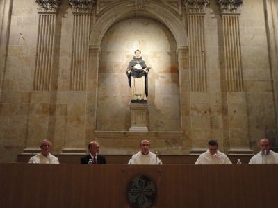 1) en primer lugar, señaló que la Facultad constituye un gran servicio a la Orden, no sólo a los frailes de la provincia de España y a los de las provincias de América Latina, sino que tiene una proyección mucho más allá de Salamanca: Guinea Ecuatorial, Cuba y Perú, y en otros países a través de la Escuela de Teología en Internet Santo Tomás de Aquino. La Facultad continúa proyectando una mirada al horizonte lejano y al local;