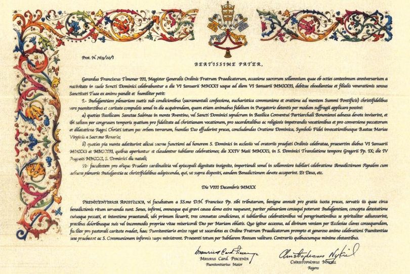[op.org] El papa Francisco ha concedido una indulgencia plenaria con motivo del 800 aniversario del Dies Natalis de santo Domingo de Guzmán.
