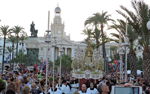 Tras la ceremonia llegó el momento de la ofrenda floral de la ciudad de Cádiz. A las 18.30 horas comenzó la procesión en la que cientos de gaditanos acompañaron a su patrona por las calles de la ciudad.