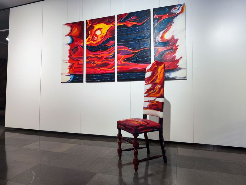 La muestra, que podrá visitarse hasta el 1 de junio de 2025, ofrece un recorrido introspectivo a través de una pintura profundamente influida por la palabra poética. Antonio Machado, Gabriela Mistral, Raúl Zurita, Joan Manuel Serrat, entre otros, han sido voces que han guiado a la artista en su aproximación al devenir humano, con sus luces y sombras, su pasión y su fragilidad.