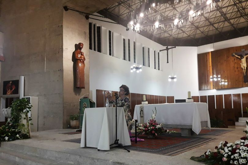 Un recuerdo a cargo de la hija del arquitecto autor del templo y, al mismo tiempo, sobrina de quién fue el ideólogo de la estructura espacial que sostiene el techo del mismo. De nuevo, el espacio se volvía a llenar de gratitud a la Orden de Predicadores en las palabras de una hija emocionada, quien ponía voz a la ausencia de su padre y de su tío, homenaje merecido a ambos artífices de una obra emblemática por su impronta arquitectónica. El mejor resumen de esta intervención está entresacada de la misma, porque no se podría explicar con más acierto lo que el arquitecto quiso expresar en su obra: