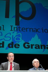 Otro momento especial fue, sin duda, la presentación del ultimo libro y premio Tiflos en Granada, la ciudad del poeta, presentado por Rocío Díaz (Concejal de Protocolo y Turismo del Ayto. de Granada) y de la Delegada de Educación, Cultura y Deporte de la Junta de Andalucía, Ana Gámez, quien destacó cómo este libro habla de lo urbano, de la sexualidad, de grúas, gimnasios, drogas y redes sociales, como contrapunto de complejos conceptos teológicos, de la soledad de los claustros y el intimismo. En el acto participó la pintora Elena Laura, quien presentó tres de sus obras inspiradas en “Yo he querido ser grúa muchas veces”. Fue sin duda una ocasión especial, emocionante y a la vez divertida ante un público que llenó el Teatro Alhambra.