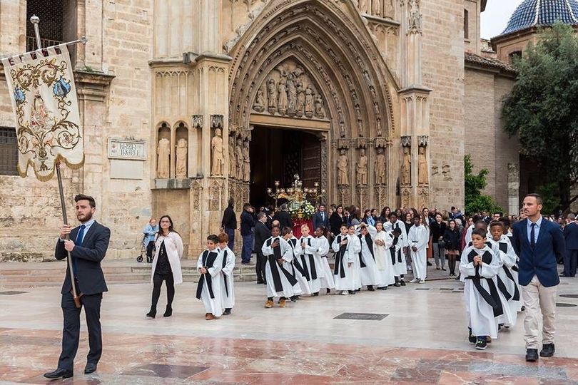 Alumnos del Colegio en la procesión de San Vicente Ferrer saliendo de la Catedral de Valencia
