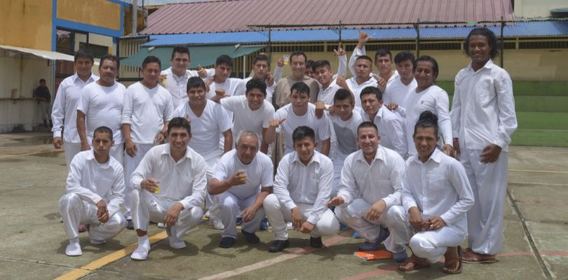 El padre José María con internos del centro penitenciario San Francisco de Asís