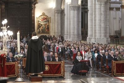 También el lunes, 16 de abril, por la mañana, tuvo lugar en la Catedral el solemne pontifical, presidido por el Sr. Arzobispo, con asistencia de las distintas autoridades y de representantes de las asociaciones vicentinas. Como es tradicional el sermón estuvo a cargo de un fraile dominico, en este caso, de fray Alejandro López Ribao OP. El sermón se pronuncia siempre en valenciano, en recuerdo de los sermones de San Vicente en los territorios de la antigua Corona de Aragón, en los que utilizaba siempre la lengua del pueblo. En él destacó la fe del santo haciendo un símil con los cuatro evangelistas del cimborrio del templo. Además comentó las lecturas exponiendo al santo valenciano como ángel, predicador y profeta. Para terminar dirigió una oración al santo pidiendo su interecesión sobre su ciudad y sobre toda la Comunidad. Para más información pulsar aquí.