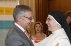 La priora del monasterio, M.ª Dolores Pérez, y el ministro de Fomento, José Blanco, firman en Madrid el convenio, con una ayuda de 214.000 euros