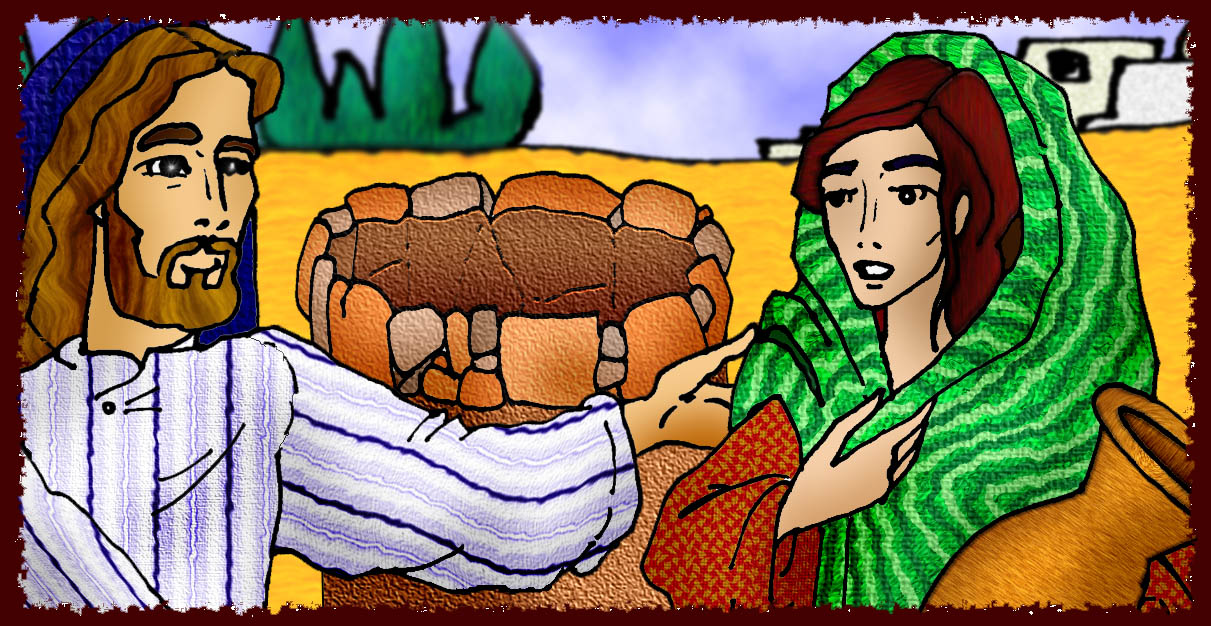 NARRADOR: En aquel tiempo llegó Jesús a un pueblo de Samaria llamado Sicar, cerca del campo que dio Jacob a su hijo José: allí estaba el manantial de Jacob. Jesús, cansado del camino, estaba allí sentado junto al manantial. Era el mediodía, sus discípulos se habían ido al pueblo a comprar comida.