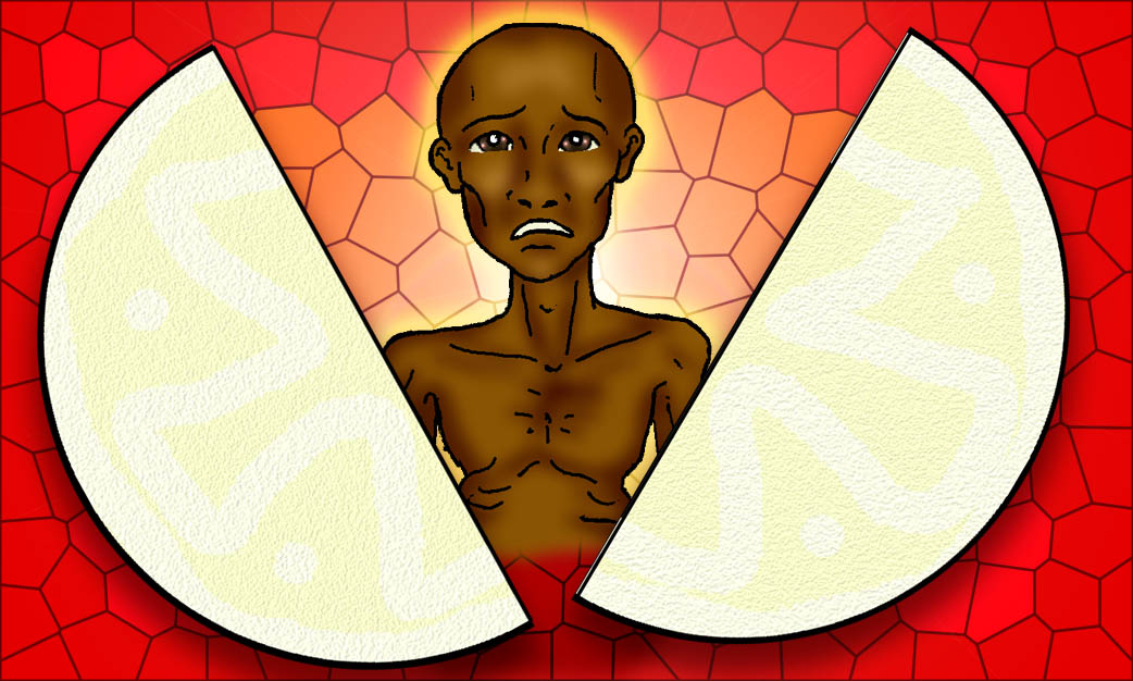 Narrador: Él, tomando los cinco panes y los dos peces, alzó la mirada al cielo, pronunció la bendición sobre ellos, los partió y se los dio a los discípulos para que los repartieran a la gente.